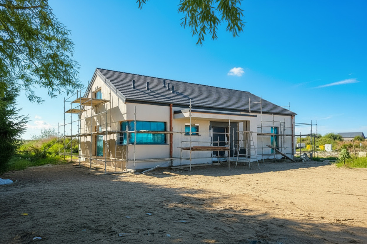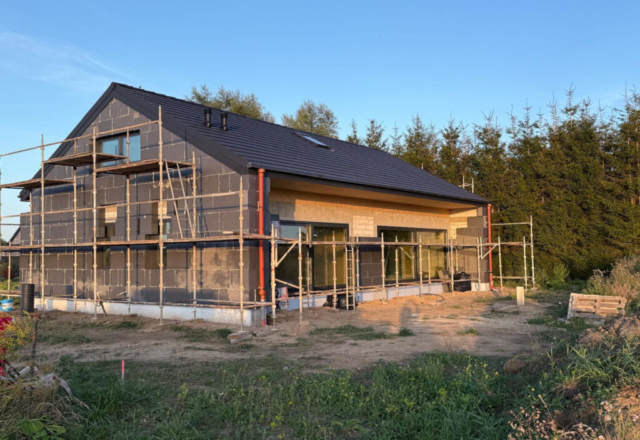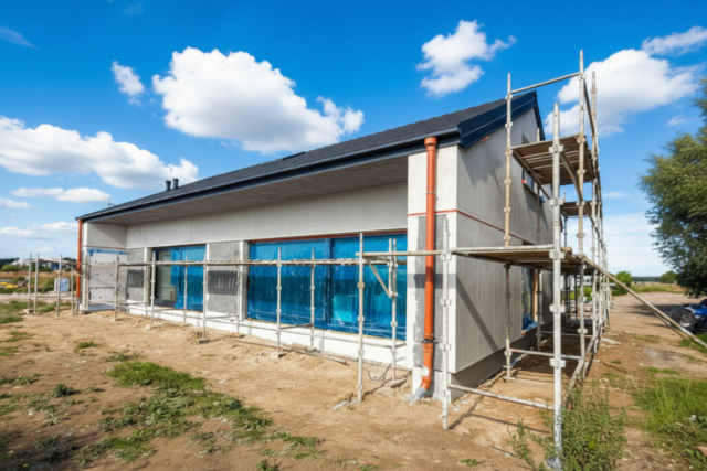 Wykonanie instalacji podposadzkowych i wewnętrznych (w tym podtynkowych), tynki wewnętrzne, posadzki, zabudowy z płyt GK. Prace zewnętrzne: wykonanie elewacji, wejścia do budynku, montaż drzwi zewnętrznych.