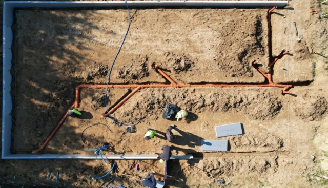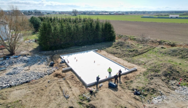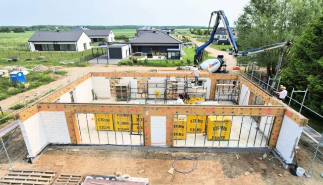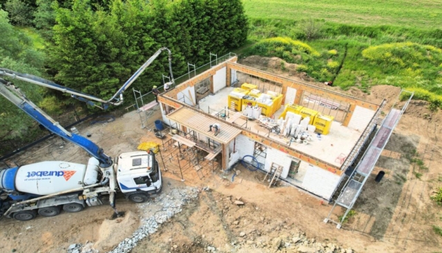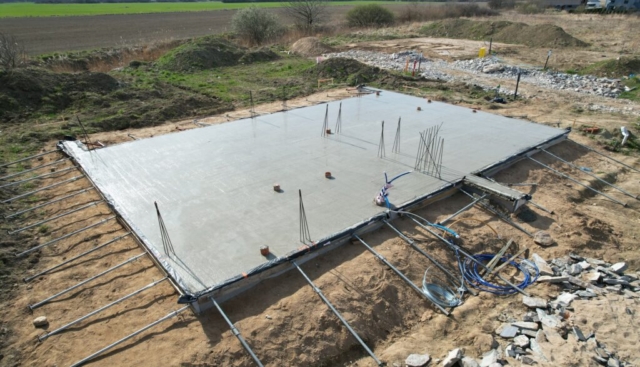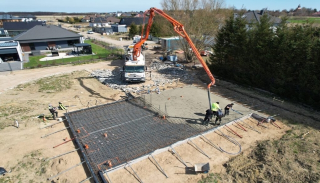 Wykonanie płyty fundamentowej, budowa ścian nośnych parteru, montaż podciągów i słupów konstrukcyjnych, wykonanie wieńca oraz zadaszenia wejścia.
